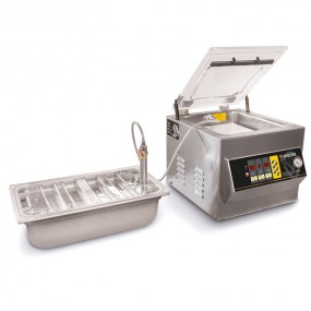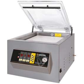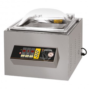 Confezionatrice sottovuoto ad aspirazione esterna; barra saldante mm 350; alimentazione 220 V -50 Hz; pompa del vuoto 10 lt/min; scheda digitale; aspirazione manuale e automatica; dimensioni mm...